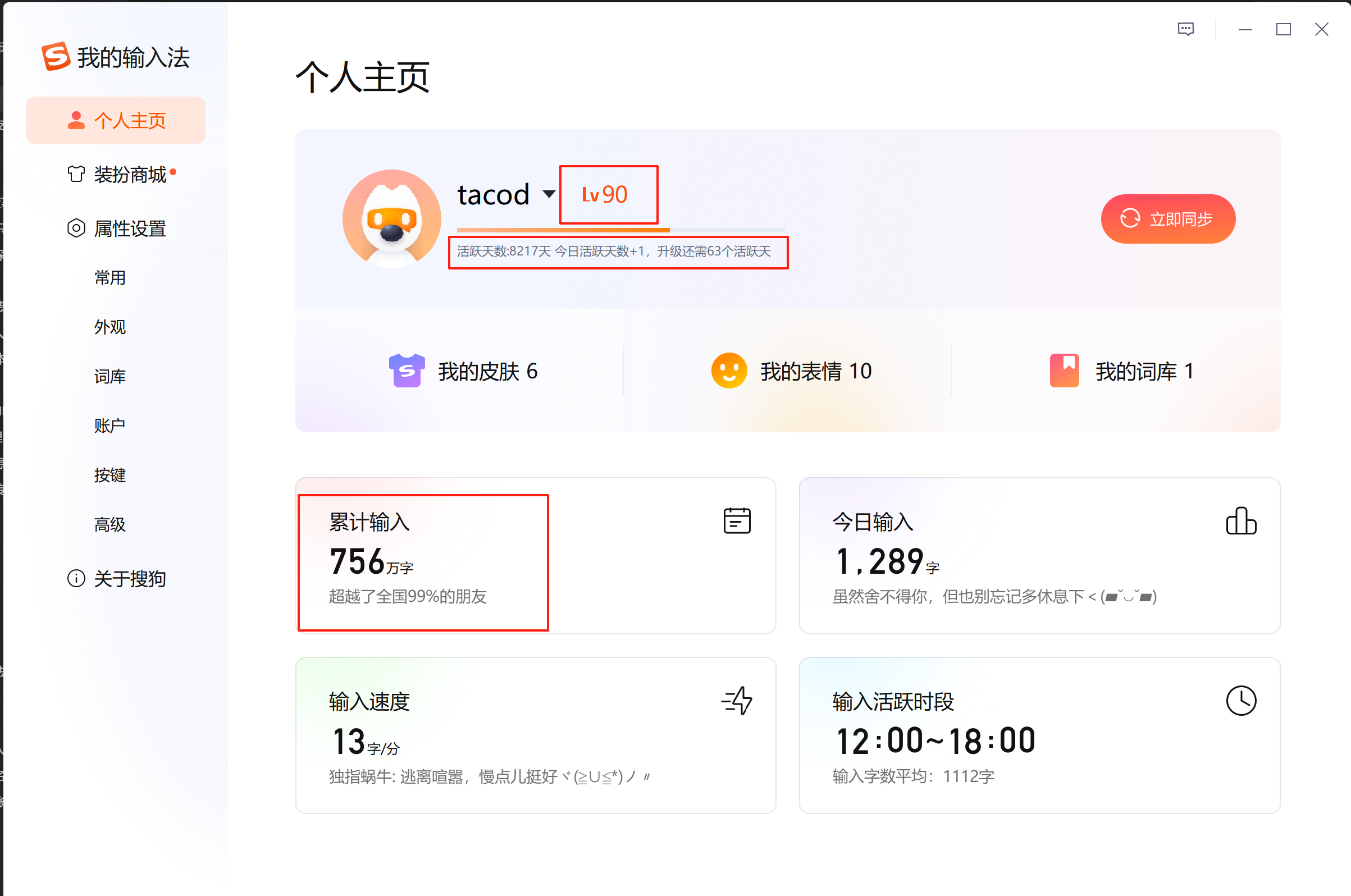 我不是搜狗新用户,老得不能再老,从他刚出来就开始用,如下图,奇怪的是,账户显示我活跃了8217天,22年,搜狗输入法应该是2006年出来的,貌似也不对。
